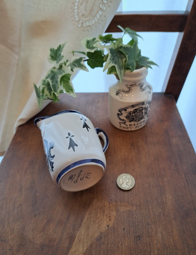 カンペールは、欧米ではコレクターズアイテムになっています。ハンドペイントのぬくもりを楽しめるアイテムです。1ポンドのコイン(100円玉と同じ大きさ)と一緒に撮影している画像がありますので、大きさの参考にしてください。在庫整理によりお値段下がりました