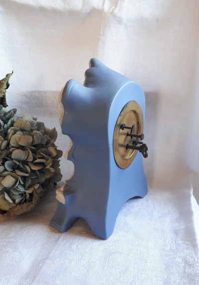 ウェッジウッド ジャスパーシリーズより少し濃いめのブルー、陶器のエレガントな置時計。