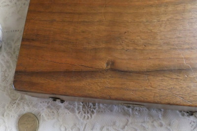 仕切り版の1つに割れがあり、裏に13cmほど細く浅い木の割れがあり、細かな使用傷がありますが、